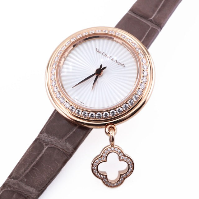 Van Cleef & Arpels Van Cleef & Arpels Charm Clover Watch Charm Watch Rose Gold Watch Watch 18K Rose Gold Pink Diamond Bezel Bezel Diamond Pink Gold Shell Dial